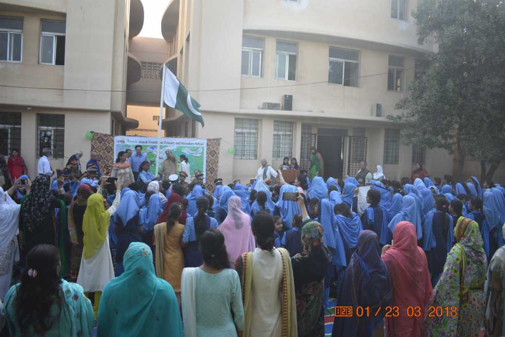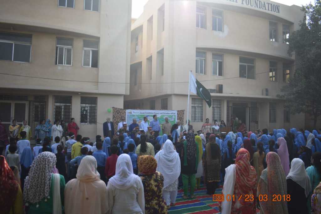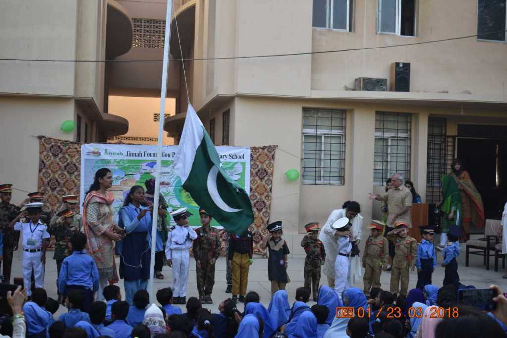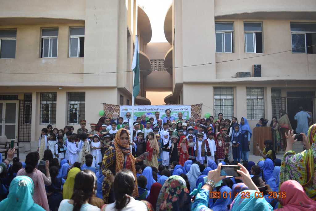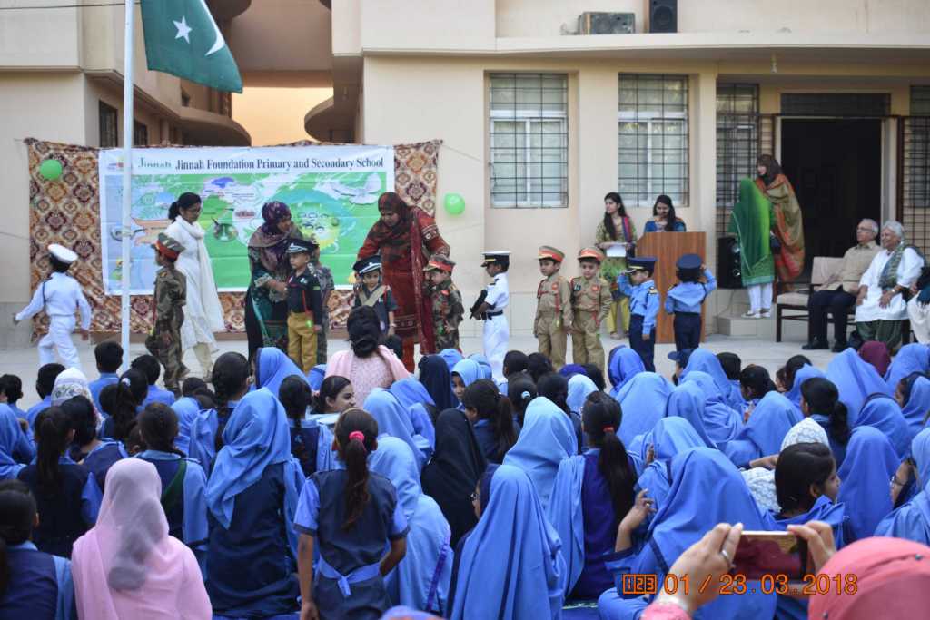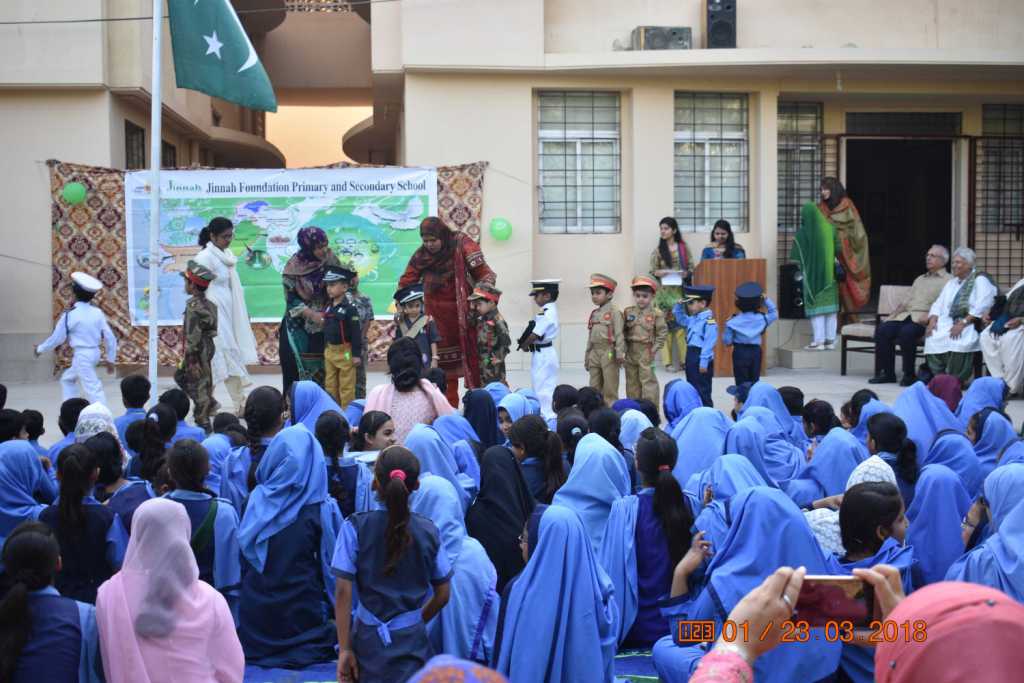 Pakistan Day celebration by the students, teachers, parents and administration of the Jinnah Foundation.