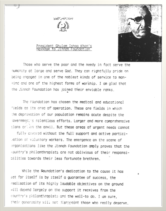 "JINNAH FOUNDATION (MEMORIAL) TRUST - A COMMITMENT TO EDUCATION AND HEALTH"