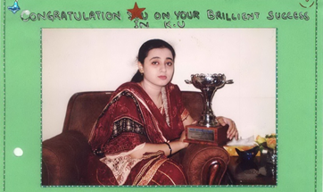 second position in B.Sc. (Hons) and First position in M.Sc. from Karachi University